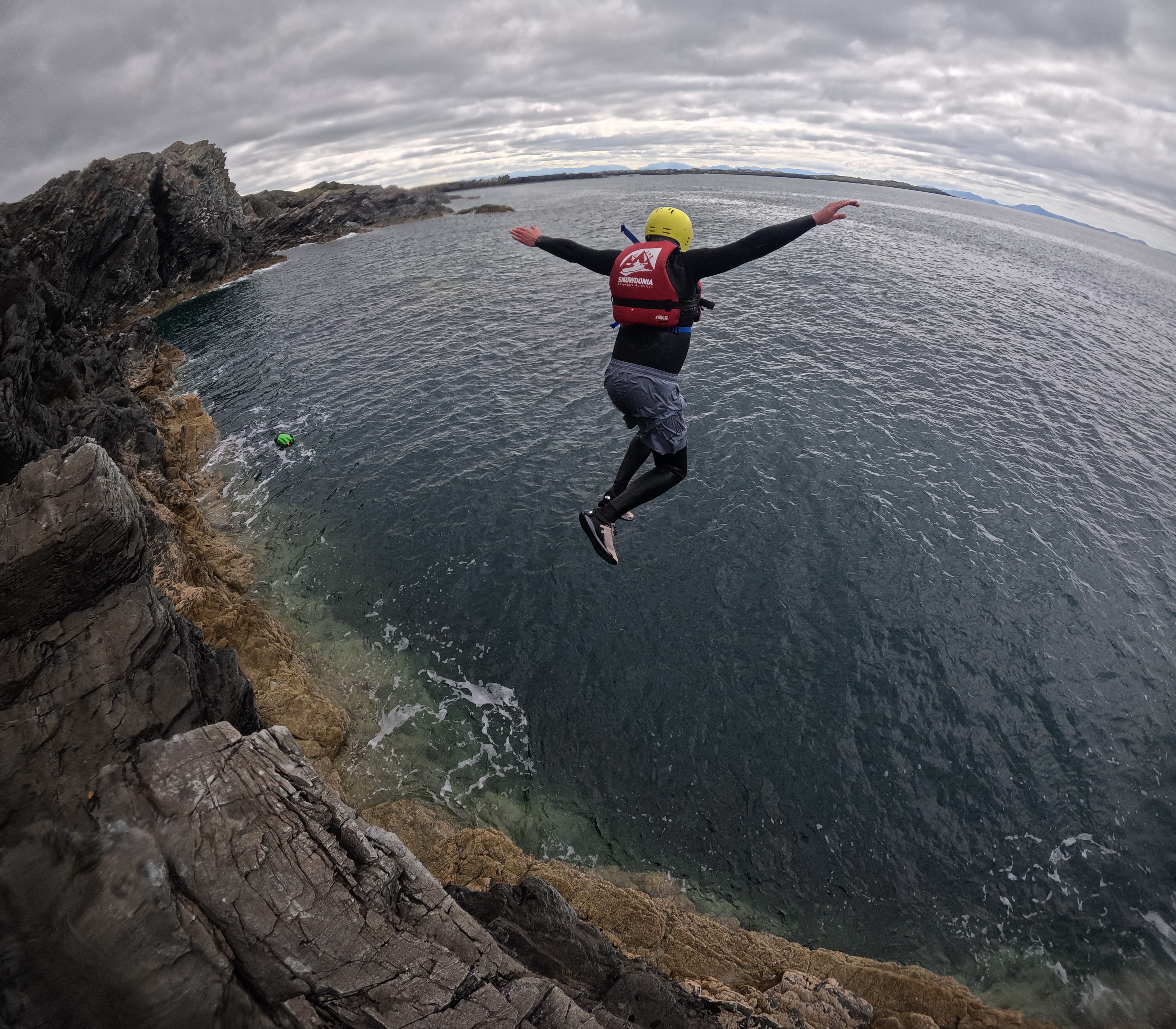 The short answer is no! Anglesey offers the best coastline and virtually all providers use a similar area although everyone has different versions of ‘the route’. Our wetsuits are winter 5mm wetsuits and in the shoulder seasons we use wetsuit gloves, socks and hats. We’re very experienced and very good at keeping the team moving; this means more jumps and less getting cold (do not underestimate this element!).